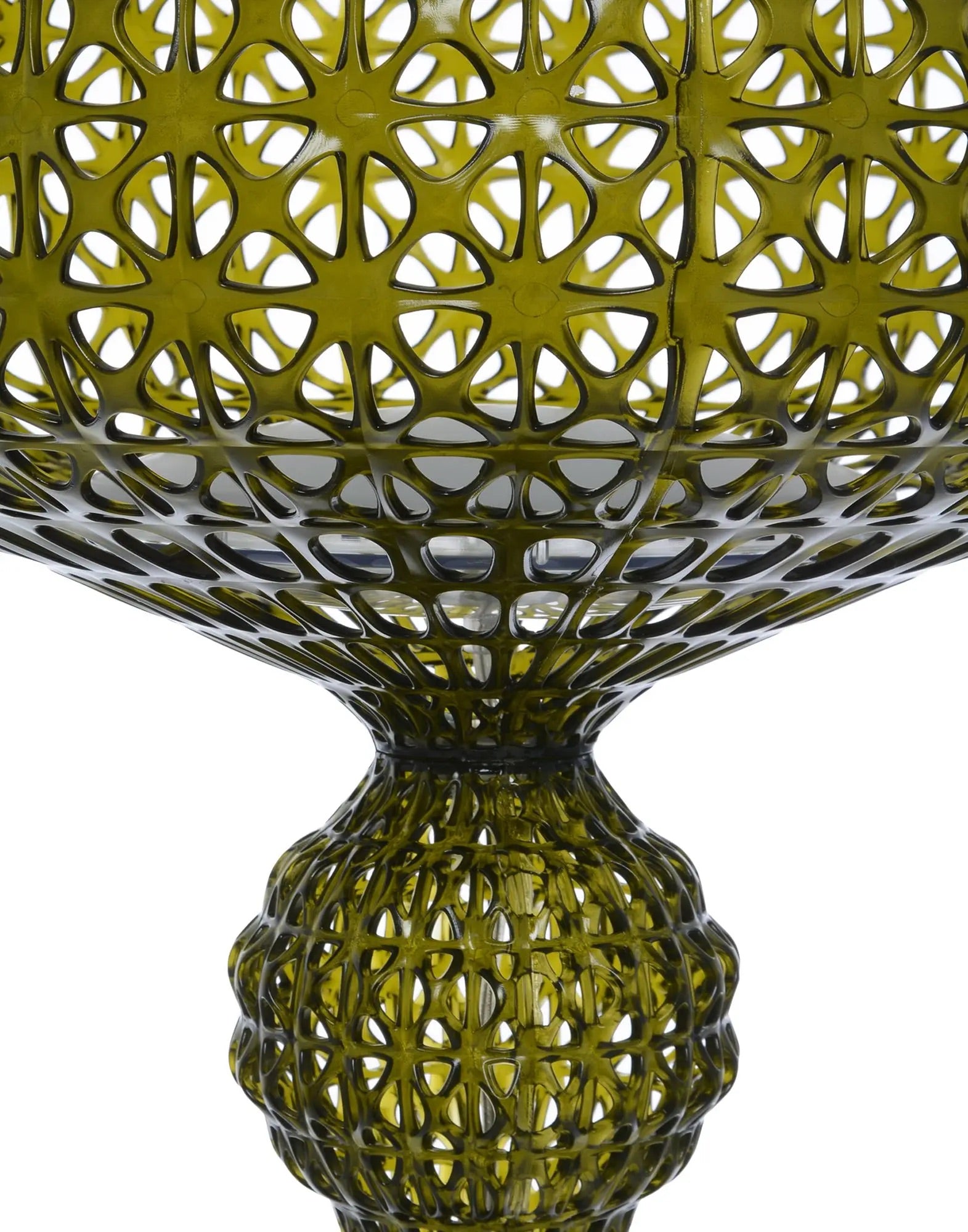 The Kabuki floor lamp is injection moulded. The technology used makes it possible to create a woven structure similar to lace with a unique perforated surface through which the light is diffused